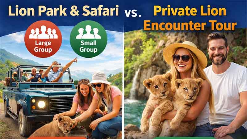 - Kombinierte Touren (Löwe + Safari + Zoo): 50 € – 120 €