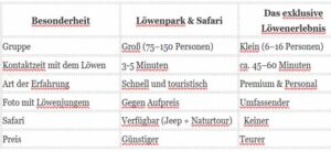 Löwenpark & Safari vs. private Löwenbegegnungstour